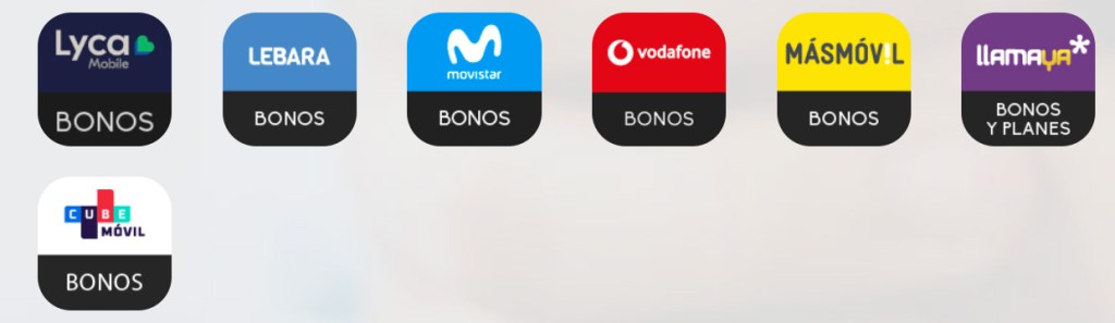 Servicios de recarga para teléfonos móviles de prepago y adquisición de bonos,