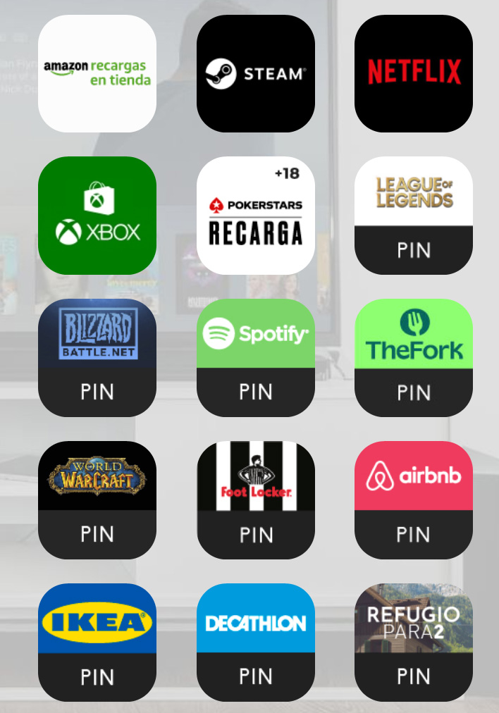 Solicite su código PIN digital para las principales marcas de contenido de tiendas, videojuegos, servicios de streaming y otros, y evite el uso de tarjetas de crédito. Simplemente introduzca el PIN del producto digital deseado y el importe se añadirá automáticamente a su monedero.