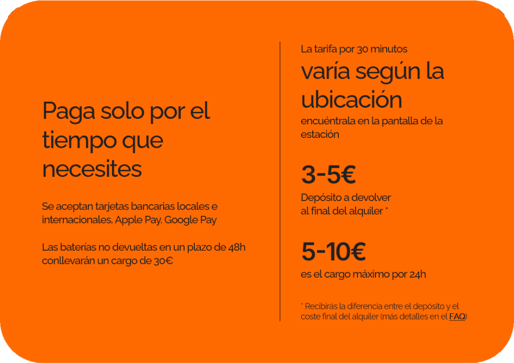 - ¿Qué ocurriría si no devolviera la batería? En caso de que la batería no sea devuelta en un plazo de 48 horas, se realizará un cargo de 30€ a su tarjeta, permitiéndole continuar utilizando la batería, la cual pasaría a ser de su propiedad.